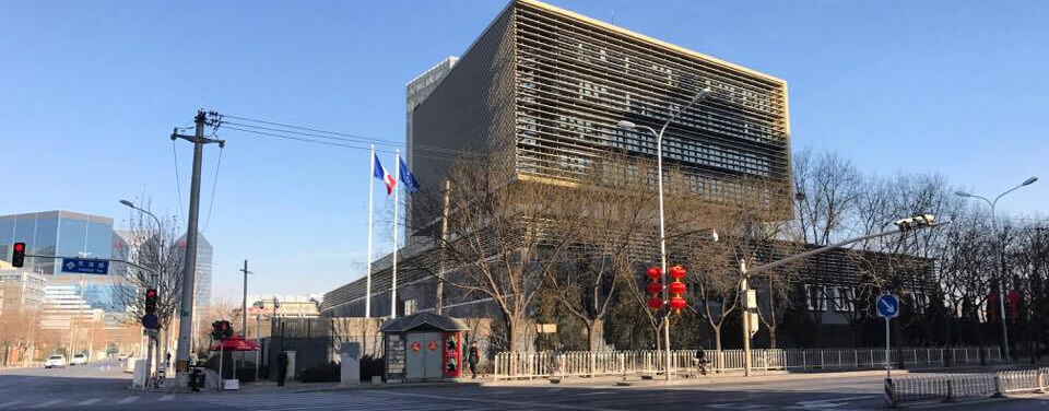 C'est mon lieu de travail depuis le 17 janvier 2016. L'Ambassade de France est située dans le district de Chaoyang, un quartier comprenant de nombreuses ambassades.