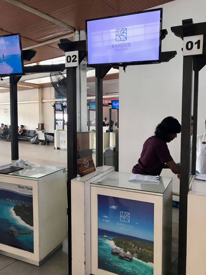 Malé est la capitale des Maldives. Nous n'y sommes pas passé vraiment puisque l'aéroport de Malé (le seul aéroport international des Maldives) est situé sur l'île avoisinante. Une fois les bagages récupérés et la douane passée, la navette pour l'île est située à quelques mètres à peine de la sortie principale de l'aéroport. Le transfert se fait donc très rapidement.